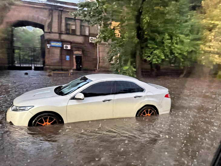 Інтенсивні зливи в місті тривають з обіду, а надвечір вони спричинили справжній транспортний колапс. Вулиці перетворилися на ріки, сотні машин опинилися у воді, а рух на деяких ділянках довелося перекривати. Окрім того, стало відомо про зникнення 23-річної дівчини під час негоди — її розшукують водолази.