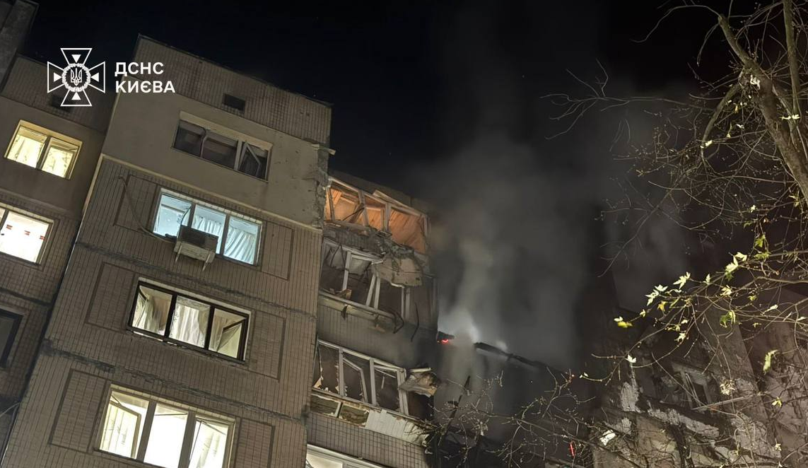 У Подільському районі ракета влучила в багатоповерхівку на рівні 15-го поверху, де рятувальники евакуювали 13 людей. У Дніпровському районі ДСНС ліквідувала пожежі у двох квартирах п’ятиповерхівки площею 50 кв. м, а за іншою адресою сталося часткове руйнування 19-го та 21-го поверхів. Також горіли дерев’яні споруди спортивної бази загальною площею 200 кв. м.